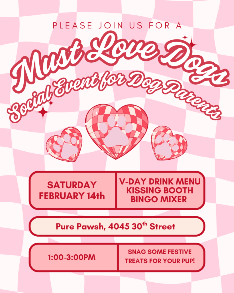 Join us for a Must Love Dogs Social Event at Pure Pawsh on February 14th from 1:00-3:00 p.m.